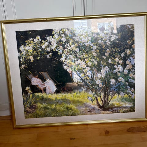 Flot maleri i guldramme med motiv af en sovende sydame.
