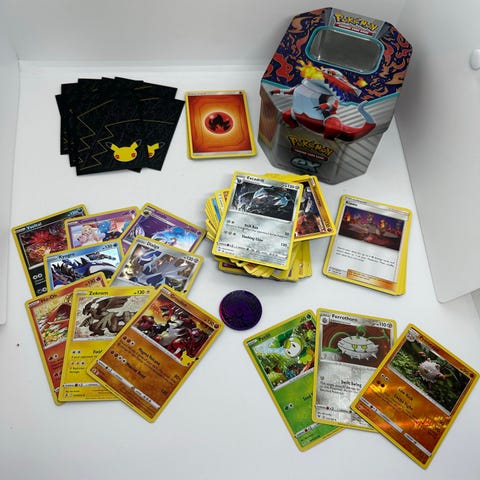 Mange helt forskellige pokemonkort mm i æske