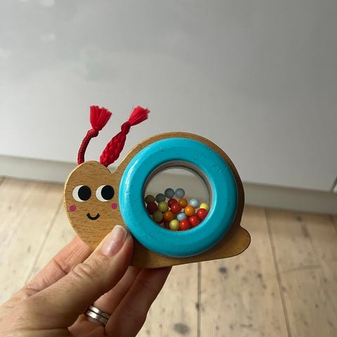 Rangle i træ trærangle legetøj i farverigt design. Rangle bestående af sammenbundne træstave og trækugler i flere farver samt små ringe. Velegnet som babylegetøj til at gribe om og ryste. Fremstillet primært i træ med malede overflader og enkelte plastdele. Kan bruges af både drenge og piger.