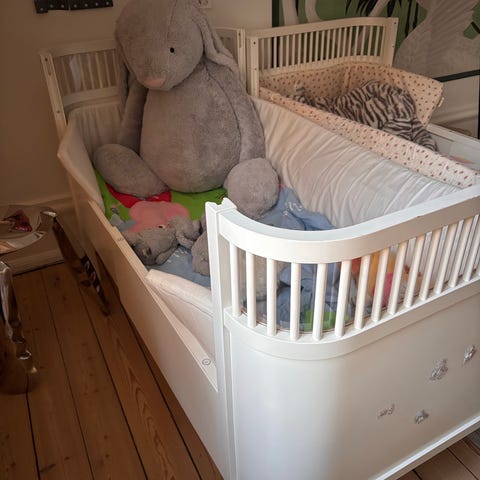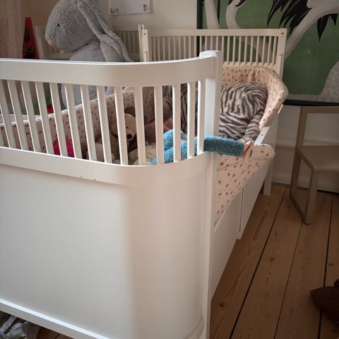 Sebra tremmeseng i hvid. Klassisk tremmeseng med afrundede hjørner og tremmer hele vejen rundt. Sengen har fast bund og sider, der giver god støtte og afskærmning til barnet. Egnet til brug som babyseng og juniorseng afhængigt af indstillinger og tilbehør. Fremstillet i træ med malet overflade. Passer ind i de fleste børneværelser med sit enkle og neutrale design.