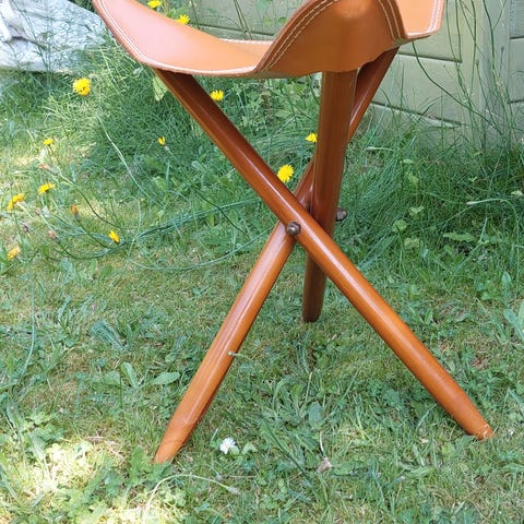 N-Rit foldbar skammel i kompakt letvægtsmodel. Sædet er i orange stof, stellet er i sort metal. Stolen kan foldes sammen og opbevares i den medfølgende pose med snørelukning. Egnet til udendørs brug som camping, fiskeri, festival eller andre aktiviteter, hvor der er behov for en let og transportabel siddeplads.