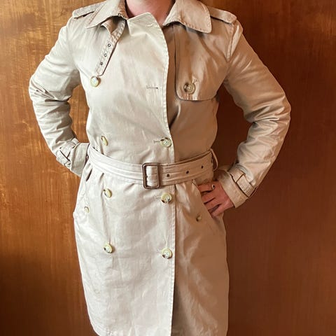 Trenchcoat, str. 42, Ralph Lauren, Cremehvid, Blanding, Ubrugt, Sommer trenchcoat, passer str 40-42, med logoknapper og bindebælte. Den er 80 cm fra skulder til bund, ærme 65 cm og brystmål ved lukket frakke er 104 cm.