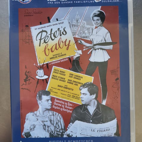 Peters baby dvd film. Dansk komediefilm udgivet på dvd i digitalt remasteret version. Forsiden viser oplysninger om medvirkende skuespillere og filmens originale titel. Egnet til afspilning på dvd-afspiller, der understøtter det viste regionsformat og aldersmærkning på omslaget.