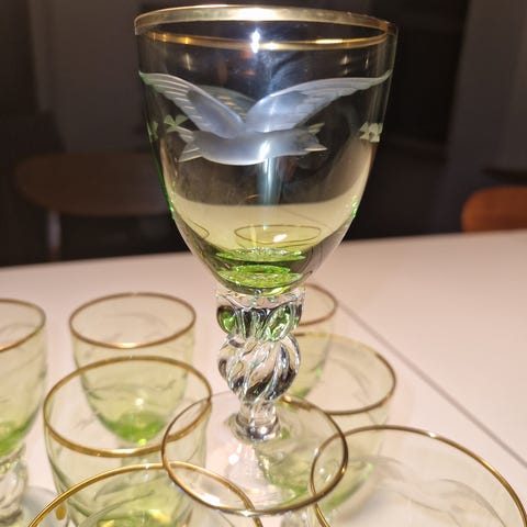 12 Mågeglas Likørskål Med Guldkant