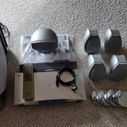 JVC hjemmebiograf system med dvd og surroundhøjttalere sølv
