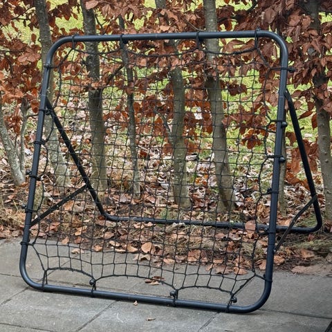 Fodboldmål og rebounder til brug i haven. Sættet består af et større fodboldmål med net samt en Stiga rebounder/returbold-ramme. Egnet til træning af skud, afleveringer og boldkontrol for børn og voksne. Kan opstilles på græsplæne i have eller lignende udendørsarealer.
