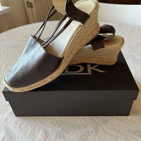 Flotte sommersandaler med espadrille-sål i flettet look, som passer perfekt til kjole, jeans eller sommeroutfits. Sandalerne har rem omkring anklen med spænde, som giver god pasform og stabilitet.