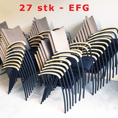 De kan stables 4 stykker oven på hinanden. Flotte, robuste kvalitetsstole bruges både som konferencestole, mødestole, cafe stole og spisebordsstole.