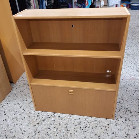 Reolen har to åbne hylder, et enkel design og er lavet af lyst træmateriale.,Afhentes i:,Røde Kors Ølby/Køge (259),Bemærk at mail, chat og beskeder ikke besvares, og varen skal købes på knappen "Gå til varen"