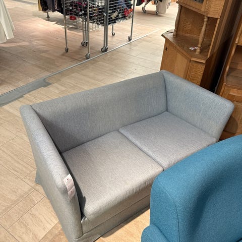 Sofaen har et enkelt design med bløde, polstrede puder og brede armlæn. Materialet ser ud til at være velour, som giver en varm og luksuriøs fornemmelse. Den har en dyb, grøn farve, der tilføjer en hyggelig atmosfære.,Afhentes i:,Røde Kors Kolding (621),Bemærk at mail, chat og beskeder ikke besvares, og varen skal købes på knappen "Gå til varen"