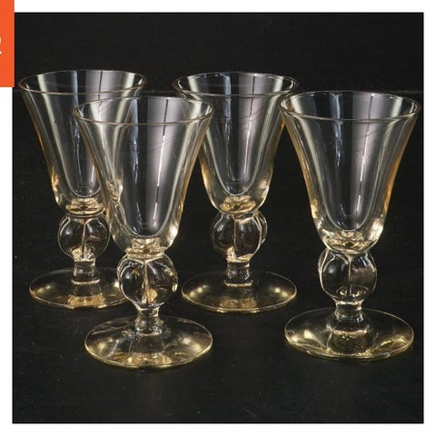 Dette er et sæt af fire krystal vinglas af plastik!, hver med en højde på 17 cm. Glasene har en dekorativ, facetslebet overflade, som giver dem et elegant udseende. De er gennemskinnelige og designet til at tilføje et strejf af sophistication til enhver borddækning.
