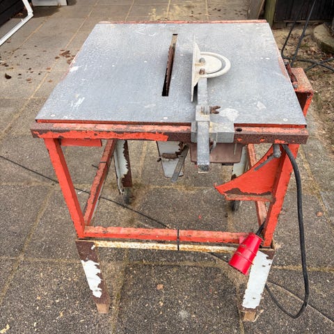 Kraftig industri-bordsav fra engelske Wadkin Bursgreen, model SPKO 1204. Wadkin er kendt for særdeles solid konstruktion og høj præcision inden for træbearbejdning. Maskinen er opbygget i kraftig støbejernskonstruktion, hvilket giver stabil drift og minimal vibration ved savning.