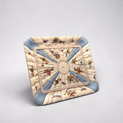 Par Limoges tendre porcelæn smykkeskrin med Putti-dekor, signeret C. Tharaud, Frankrig, 1950–1960, mål 18 x 12 cm og 13 x 7 cm, i fremragende stand med minimale brugsspor. Klik på den blå "gå til varen" knap, for at købe eller byde på denne vare. Den samlede pris vil blive vist inden du afgiver dit bud.