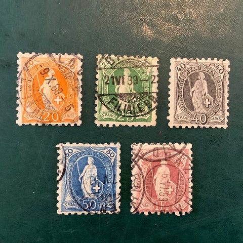 Oprindelse: Schweiz; Titel: Zittende Helvetia hvidt papir og udvalgt centrering – 2 fotokertifikater; Tilstand: stemplet; Katalog: Zumstein 28/43 inklusive 36a og 36b; Katalogværdi CHF 2.625; Afsendt som registreret forsendelse. Klik på den blå "gå til varen" knap, for at købe eller byde på denne vare. Den samlede pris vil blive vist inden du afgiver dit bud.