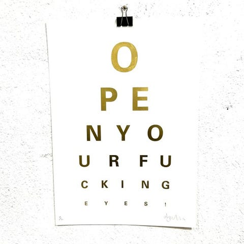 Iconic print Eye Test fra den unge britiske kunstner Alex Bucklee. Du vil ikke kunne købe dette tryk andre steder.