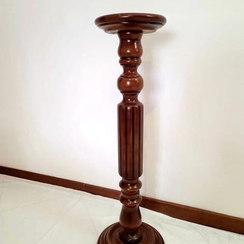 Den runde bordplade hviler på fire slanke, hånddrejede ben, som er forbundet med en praktisk underplade. Dette gør bordet ikke blot dekorativt, men også funktionelt — ideelt som vintafel, plantebord, lampebord eller stilfuldt sidebord i et klassisk eller landligt indrettet rum.