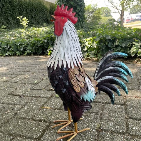 Smuk dekorativ hane. Meget smuk til haven, med smukke farver. Dette er også en meget stor og mægtig model med følgende mål: