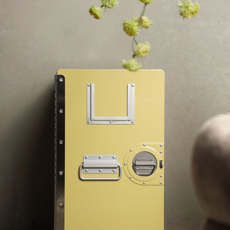Denne XL flygalley-container er forvandlet til en særdeles smuk og dekorativ opbevaringsenhed.