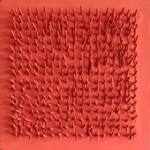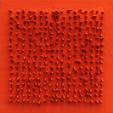 Bernard Aubertin, Dessin de Feu sur Table Rouge, blandet teknik på plade med afbrændte tændstikker, 60 × 60 cm, 2008, original udgave, håndsigneret, i god stand, Italien, solgt af Galleria. Klik på den blå "gå til varen" knap, for at købe eller byde på denne vare. Den samlede pris vil blive vist inden du afgiver dit bud.