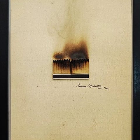 Acrilico e fiammiferi bruciati su tavola