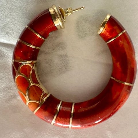 Armbånd i 18 kt gult guld og Sterling sølv 925, samlet vægt 48,5 g, armbåndstørrelse Large (18–18,5 cm), i fremragende stand, produceret i Italien, underskrevet La Nouvelle Bague, med håndlavet varmeemalje i rødt marmoreret look. Klik på den blå "gå til varen" knap, for at købe eller byde på denne vare. Den samlede pris vil blive vist inden du afgiver dit bud.