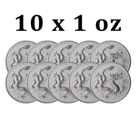 Kina. 10 Yuan 5 x 2025 1 oz ¥10 CNY Chinese Silver Dragon Coin BU