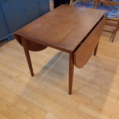 Ole Hald spisebord i teak med to tillægsplader, teak