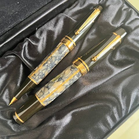 I auktionen præsenterer vi et stykke bemærkelsesværdig raffinement: Montblanc Bohème Bleu i sin stilografiske version, et objekt der forener klassisk elegance med et strejf af magnetisk farve. Fremstillet i eksklusiv sort resin med platinfinish, skiller denne pen sig ud ved den smukke syntetiske blå safir-ædelsten indlagt i clipsen, en detalje der udøver dybde og klasse og gør den til et af de mest eftertragtede eksemplarer i hele Bohème-kollektionen. Lotet tilbydes som Full Set, komplet med original æske, cremefarvet inderskuffe og den kostbare manual "Service Guide Writing Instruments", og giver samleren en fuldstændig og prestigefyldt købsoplevelse.