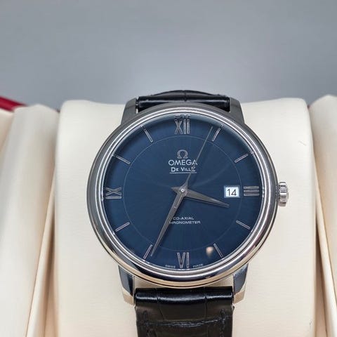 Omega De Ville X2, referencenummer 423.13.37.50.02.001, automatisk bevægelse, kasse i stål 37 mm, sølvfarvet urskive, safirglas, læderbælte aftermarket 20 cm, foldelukning, båret og i meget god stand med mindre brugsmærker, ingen æske eller papirer, forsendelse forsikret. Klik på den blå "gå til varen" knap, for at købe eller byde på denne vare. Den samlede pris vil blive vist inden du afgiver dit bud.