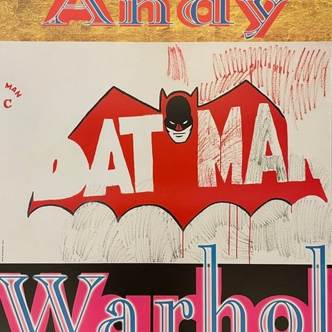 L'opera raffigura il celebre Batman reinterpretato da Warhol, con colori netti e linee marcate che fondono fumetto e Pop Art. Il supereroe diventa icona popolare, simbolo della cultura di massa americana traslata nel linguaggio dell'arte contemporanea.