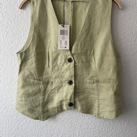 Flot hel ny vest med lommer dog er der en tryk knap foroven der gået af men har faktisk ik betydning for udseende derfor sælges den billigt nypris var 1000