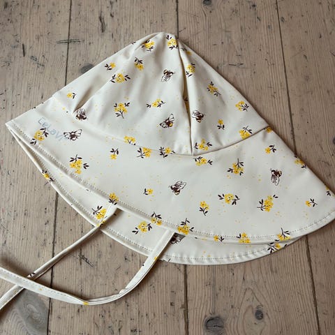 CeLaVi solhat i str. 1-3 år til pige . Hatten er beige med blomstermønster og er fremstillet i polyester. Modellen har bred skygge og nakkeskygge samt bindebånd under hagen, som hjælper med at holde hatten på plads. Velegnet til brug i solrigt vejr for mindre børn.