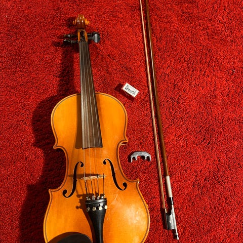 Violin i fuld størrelse 4/4 i brun træfinish. Instrumentet er håndlavet med dæk i gran og bagside i ahorn. Standardopbygning med hals, krop, f-huller, stol, sarg og snekke med stemmeskruer. Velegnet som strygeinstrument til øvning og musikudøvelse for unge og voksne spillere, der bruger 4/4-størrelse.