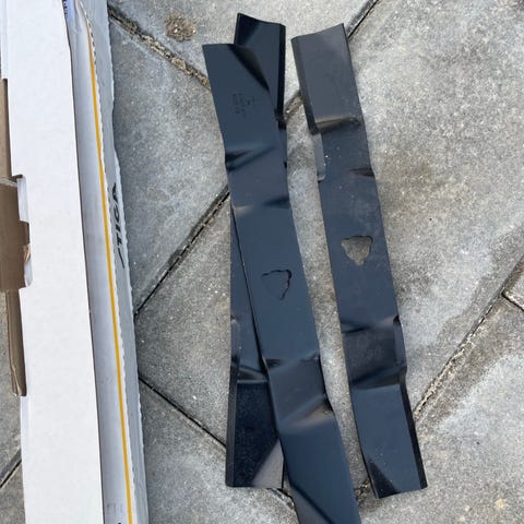 7 år gammel og lidt rusten men velfungerende dozerblad til Stiga frontklipper 107 cm.