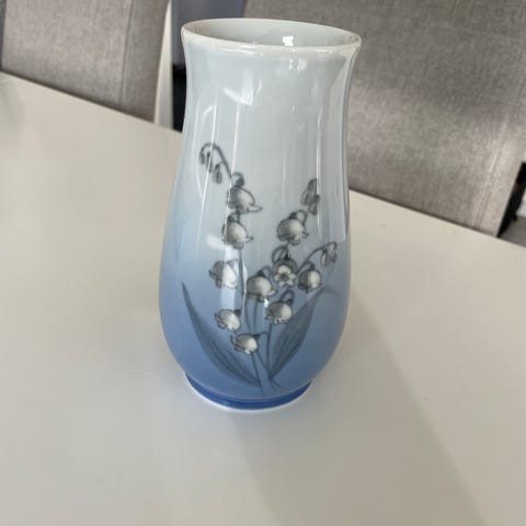 Smuk porcelæns vase fra B&G med liljekonval, 157 - 5210. Smuk kongelig porcelænsvase, 1 sortering, pæn, ren og i flot stand, fra ikke-ryger hjem. Sælges for bekendte pga flytning til mindre plads og dermed overskud af diverse. Og de bruger den ikke.