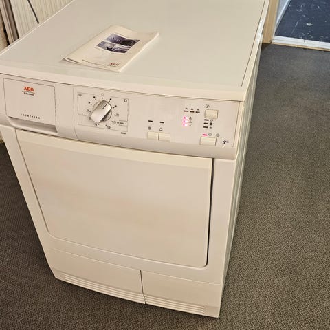 Electrolux kondenstørretumbler i hvid med kapacitet på 7 kg. Tromlen er i rustfrit stål, og fronten har betjeningspanel med programvælger, start/pause-knap, indikatorlamper og mulighed for tidsforsinkelse.