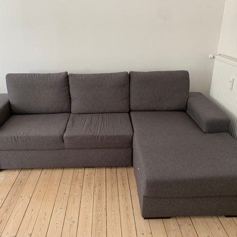 3-personers sofa i stof. Sofaen kan nemt laves om til en seng. Sæde- og ryghynder i skum. Med opbevaringsplads.