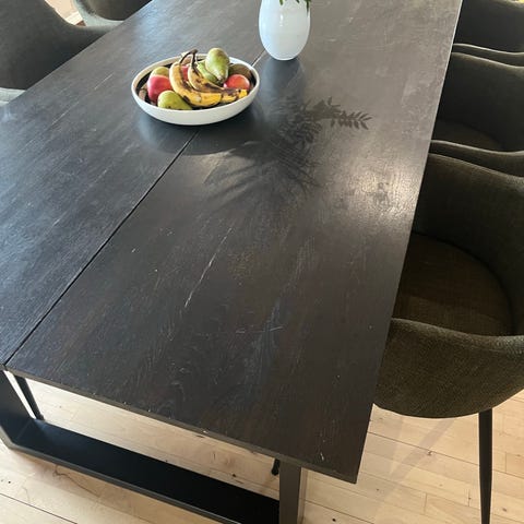 Vi har fået et nyt bord, så vi skal af med det hurtigt. Vi bor på 1.sal og kan godt hjælpe med at bære det ned.