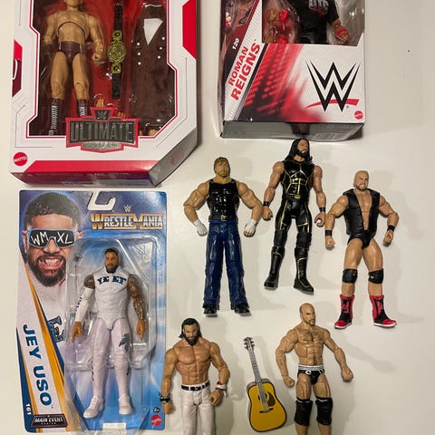 Sælger en stor samling WWE figurer som ses på billedet. Perfekt til samleren, til børn der elsker wrestling, eller hvis du bare vil have en fed bunke figurer