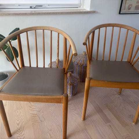 Et flot sæt danske designstole med en let og harmonisk form – perfekt til dig, der sætter pris på klassisk skandinavisk møbeldesign.