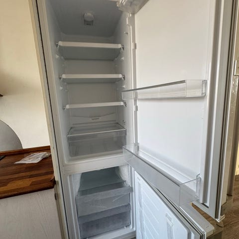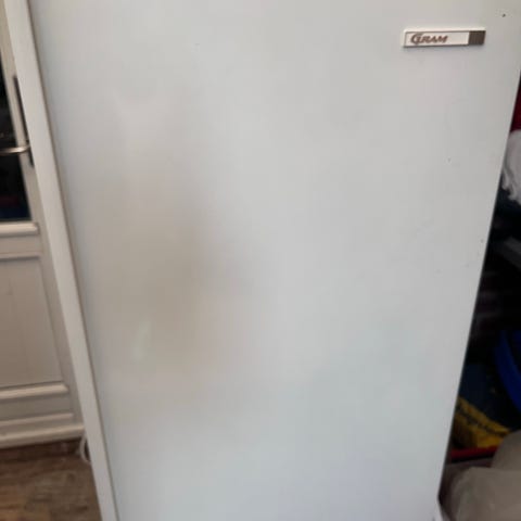 Velegnet som ekstra køleskab. Nogle indvendige plastdele og hyldebeslag fremstår med synlig slitage/defekter, som det ses på billederne.