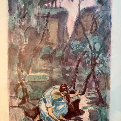 Tryk, Viggo Krag-Hansen, motiv: Børn på strand, b: 54 h: 64, Der står 47 på billedet. Det er ikke et maleri.