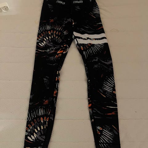 7 days active træningstights i størrelse L. Lange tights i sort farve med trykdetaljer i kontrastfarve på benet. Velegnet til fitness og anden træning. Elastisk materiale med bred linning for god pasform. Materialesammensætning og vaskeanvisninger fremgår af mærket indvendigt i buksen.