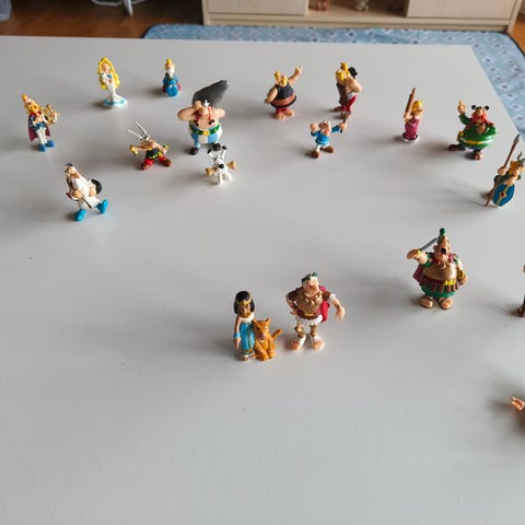 Asterix og Obelix plastfigurer sæt med 3 figurer fra 1980erne. Sættet består af tre farverige figurer i hård plast, inspireret af Asterix-universet. Figurerne forestiller tre forskellige karakterer i hver deres tøjstil og farver. De kan bruges som legetøj, samlerobjekter eller pynt på hylde eller skrivebord. Velegnet til fans af tegneserier og figursamlinger.