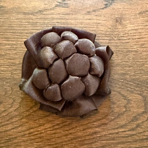 Sød broche, med små røde kugler der ligner ribs. Måler 3,5 x 3,5 x 2 cm. Fin stand, ren og pæn.