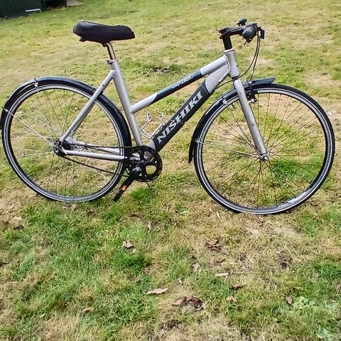 Gearene virker ikke og skal repareres, derfor sælges den billigt. Ellers pæn og solid cykel fra Nishiki.