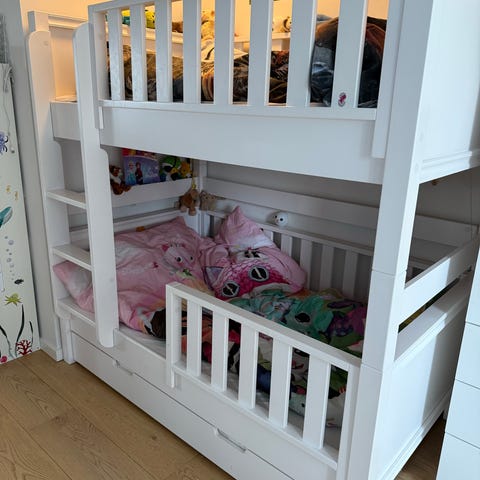 Sengen fremstår i fin stand, der er enkelte mærker efter klistermærker (se fotos) ellers små brugsspor, men ellers i flot stand. Køjesengen sælges inkl. to IKEA-madrasser, der passer til, derfor er prisen op sengen inkl. madrasser.