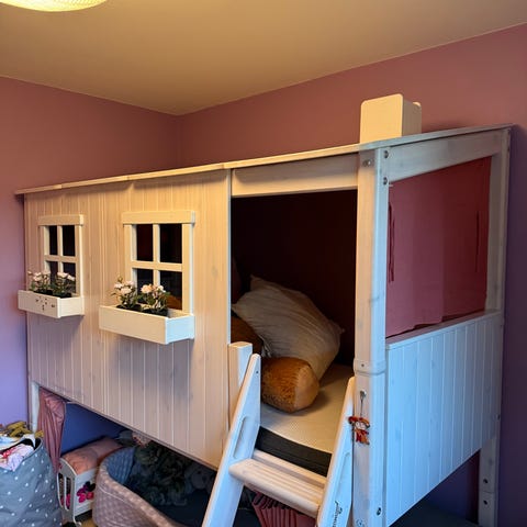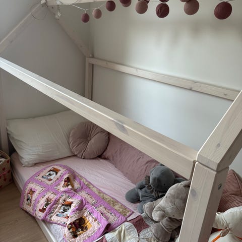 Gardin, lyskæde og madras kan medfølge i prisen.