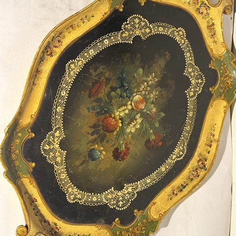 Ældre russisk håndmalet blomster metalbakke. Start/midt 20.Årh.