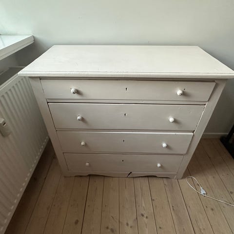 Hvid kommode med fire skuffer i god stand